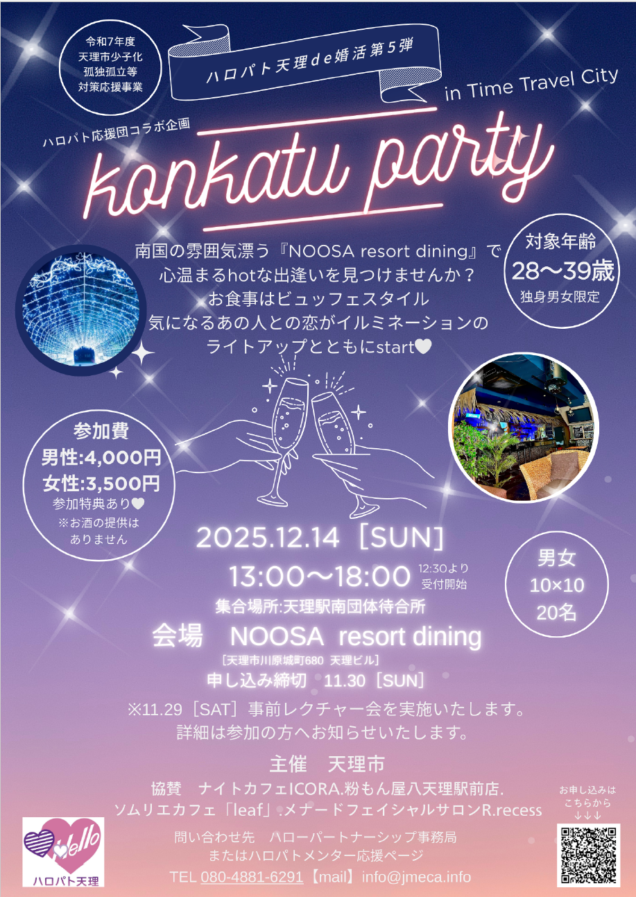 2022年12月より天理市のバックアップのもと、わたしたちJMECA(NPO法人日本結婚教育協会)は天理市を愛する住民のみなさまとタッグを組んでハロパト天理を進めてまいります。
