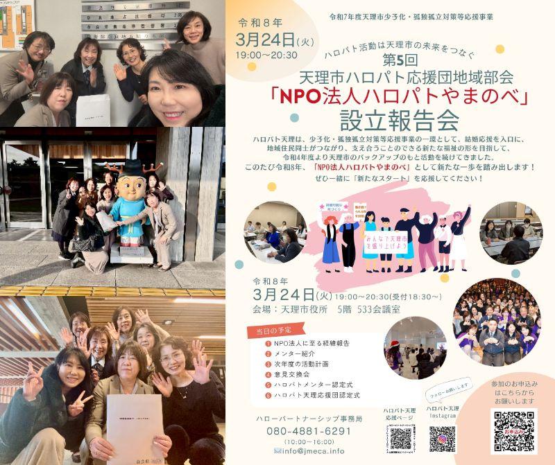 ハロパト天理は「NPO法人ハロパトやまのべ」として新たな一歩を踏み出します。